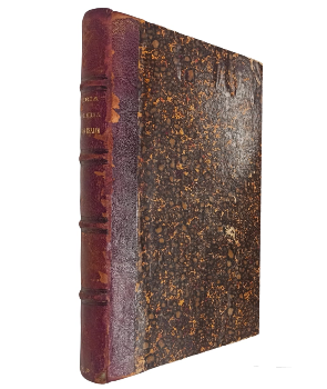 (OO63) - Santiago -Cuadros y episodios arreglados i estraídos de la "Historia de la guerra de España en el Pacífico " publicada en 1883 por el teniente de navío de la marina española don Pedro de Novo i Colson - Un volumen de 485 páginas en que páginas n° 57, 58, 59 y 60 son copia no original del ejemplar - Encuadernación en medio cuero café con letras doradas en el lomo - Desgaste en lomo, tapas, perímetros y puntas - Algunas páginas con pintas de óxido - Punta superior levemente partida - Interior bien conservado - Buen estado |