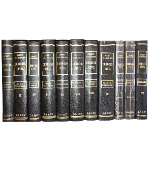 (TF21) - Buenos aires - 11 tomos, falta n° V - Tomo I al XI - Traducción de la Doctora Delia García Daireaux - Supervisión por el Doctor Jorge Joaquín Llambias - Tomo I: Parte General, El Derecho e Instituciones Civiles - Tomo II Volumen I: De las personas (1° parte), Estado de las personas, Matrimonio, Divorcio y separación de cuerpos y Filiación legítima - Tomo III De las Personas (2° parte) Volumen II: Filiación natural, Filiación incestuosa y adulterina, Adopción, Relaciones de familia, Alimentos, Relaciones jurídicas entre los esposos, Patria potestad, Tutela e Incapacidades - Tomo IV Las Obligaciones (1° parte) Volumen I: Contratos, Nociones generales, Elementos, Formación y prueba, Fuerza obligatorio, Efecto relativo, Nulidad, Incumplimiento y Responsabilidad contractual - Tomo VI Los Derechos Reales: Análisis de los derechos reales, La propiedad inmobiliaria, La propiedad mobiliaria, Usufructo, Servidumbre y Concesiones - Tomo VII Derechos Reales (2°parte): Caracteres generales de las garantías, Publicidad inmobiliaria, Garantías reales inmobiliarias y Garantías mobiliarias - Tomo VIII Contratos Civiles: Venta y permute, Locación, Contrato de trabajo, Contrato de empresa, Mandato, Sociedades y asociaciones, Depósito y préstamo, Seguros y Contratos diversos - Tomo IX Regímenes Matrimoniales: Reglas generales, Régimen de comunidad y Regímenes separatistas - Tomo X Sucesiones (1° parte) - Tomo X Sucesiones (2° parte) - Tomo XI Liberalidades: Régimen legal y Liberalidades y familia - Ejemplares encuadernados en medio vinilo negro, con detalles dorados en lomos y tapas - Algunos ejemplares con plástico protector - Excelente estado |