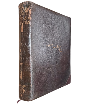 (BBB3) - Madrid - Recopilación, traducción, prefacio y notas explicativas por Julio Gomez de la Serna - Contiene LXXXIII+1236 páginas - Encuadernado en medio cuero café, original de editorial - Con letras doradas en lomo y tapa - Retrato de autor en frontispicio - Cantos adornados - Hojas de papel de tipo biblia - Desgaste en lomo y perímetros - Lomo con roces - Algunas páginas con rayas de sueño anterior con lápiz de tinta azul - Guardas no originales, de dueño anterior - Pintas de óxido en algunas páginas - Correcto estado |