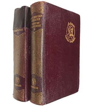 (E2) - Madrid - 2 tomos - Traducción del danés por Salvador Bordoy Luque y José Antonio Fernández Romero - Prólogo de Salvador Bordoy Luque - Tomo I: contiene El encendedor de yesca, La princesa y el guisante, La sirenita, El soldadito de plomo, La piedra filosofal, entre otros títulos - Tomo II: El príncipe malvado, El escarabajo pelotero, La mariposa, El sapo, Lo que se puede inventar, Los naipes, entre otros títulos - Tomo I y II contienen 1206 y 1201 páginas respectivamente - Encuadernados en cuero completo original de editorial, con detalles dorados en lomos y tapas - Guardas adornadas - Contiene ilustraciones - Desgaste en lomo, perímetros y puntas - Algunas páginas con pintas de óxido - Tomo I con parche dueño anterior en lomo y roce en tapa delantera - Buen estado |