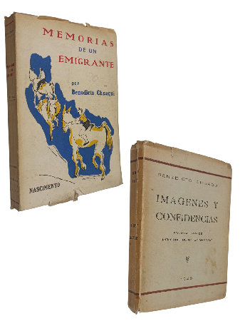 (ZZC3) - Santiago de Chile - 2 tomos - Tomo II dedica y firmado por autor en hoja de respeto - Tomo I: Memorias de un Emigrante. Premio Municipal de Novela 1943. Prologo de Luis Durand. Portada de Dalal Chuaqui. Segunda edición - Tomo II: Imágenes y Confidencias, Segunda parte de "Memorias de un Emigrante". Año 1945. - Tomo I y II contienen 254 y 352 páginas respectivamente - Rústico - Desgaste en lomos, perímetros, tapas y puntas de ambos ejemplares - Tomo II con algunas marcas óxido en tapas - Leve suciedad en tapas - Algunas pequeñas roturas en bordes de tapas - Correcto estado |