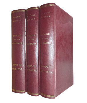 (ZZH2)(ZZH3) - Santiago de Chile - 3 tomos - Recopilación y notas de Ernesto de la Cruz - Con un prólogo y nuevas cartas, algunas recopiladas y anotadas por Guillermo Feliú Cruz - Tomo I, II y III contienen 496, 507 y 541 páginas respectivamente - Encuadernados en vinilo completa color café, letras doradas en lomos - Leve desgaste - Tomo 3 con manchas blancas en tapas - Buen estado |