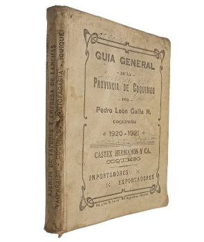 (OO23) - Coquimbo, Chile - Creada por Ley de la República el 30 de Agosto de 1826 - Contiene XXX+318 páginas - Encuadernado original en tela completa - Contiene ilustraciones y mucha publicidad de la época - Desgaste generalizado en lomo, tapas, perímetros y puntas - Suciedad en tapas, mancha de humedad en borde superior de tapa trasera y lomo - Algunas marcas de óxido al interior - Tapas con algunas notas/apuntes de dueño anterior con lápiz de tinta azul - Correcto estado |