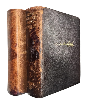 (BBA6) - Madrid - Tomo II y III, falta I - Traducción directa del ruso, introducción, prólogos, notas y censo de personajes por Rafael Cansinos Assens - Tomo II: (1866-1876). Contiene: Crimen y castigo, El jugador, El idiota, El eterno marido, El adolescente, entre otros títulos. 1927 páginas - Tomo III: (1879-1881). Contiene: Los hermanos Karamásovi, Diario de un escritor, Vida de un gran pecador, El Adolescente entre otros títulos. 1808 páginas - Ejemplares encuadernados en cuero completo original de editorial color negro café, con detalles dorados en lomos y tapas - Retrato de autor en frontispicio de cada ejemplar - Guardas y cantos ilustrados - Hoja de papel tipo biblia - Desgaste en lomos, perímetros y puntas - Tomo III con el material del lomo levemente descascarado en lomo - Correcto estado |